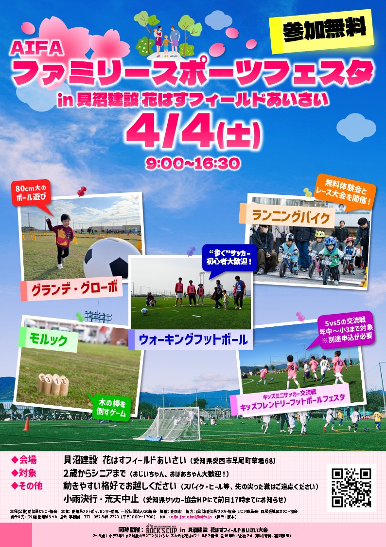 AIFAファミリースポーツフェスタ in 貝沼建設 花はすフィールドあいさい(4月4日開催)